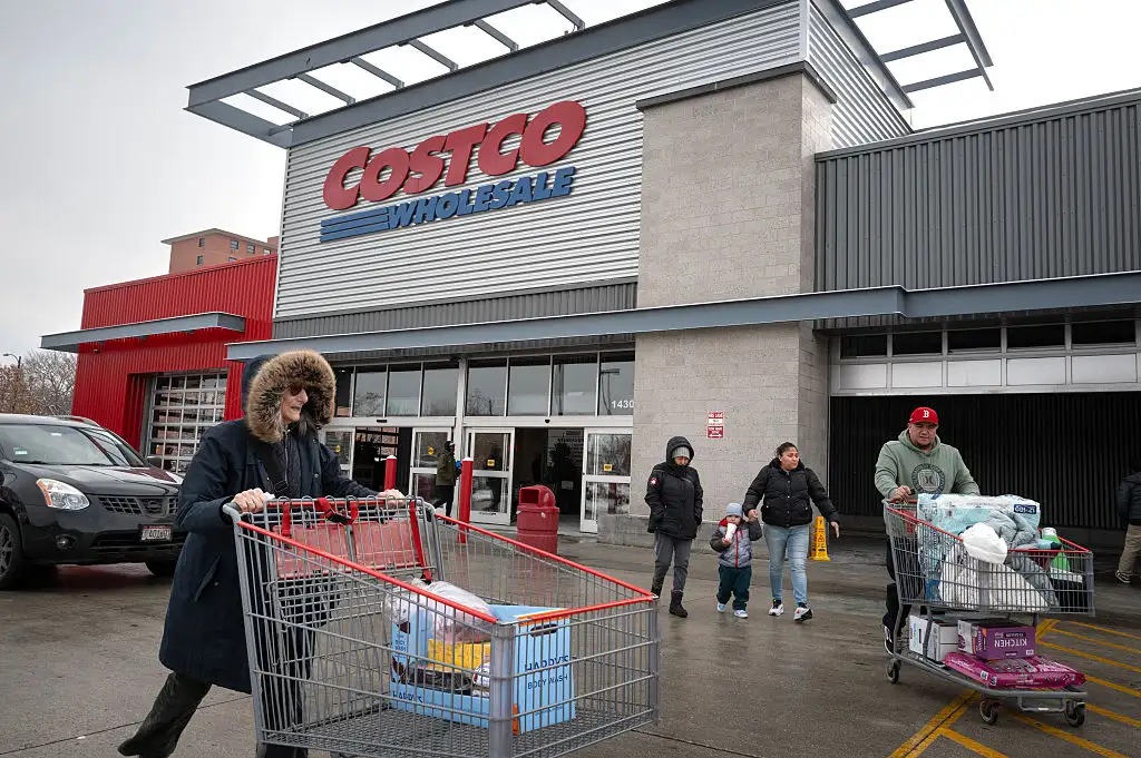 Image of a Costco store and shoppers outside